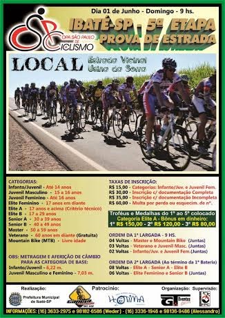 dia 01/06, na cidade de Ibaté-SP. A Prova será de Estrada, na vicinal p/